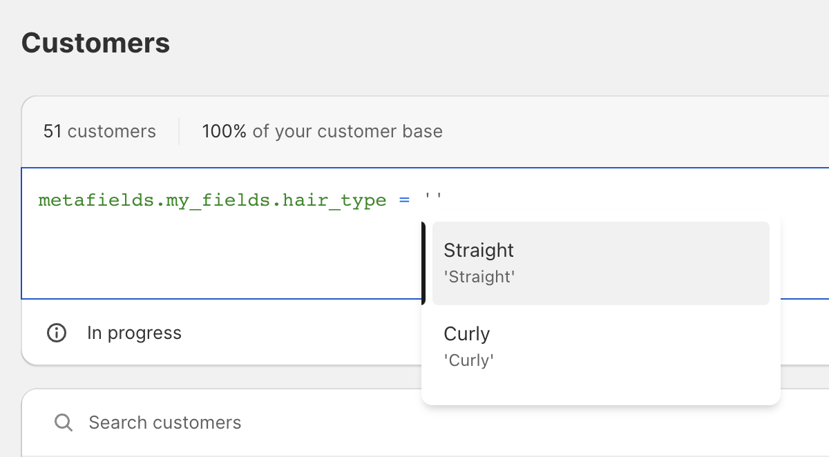 - Display the metafield's title, namespace, and key to help merchants identify the correct metafield for segmentation.